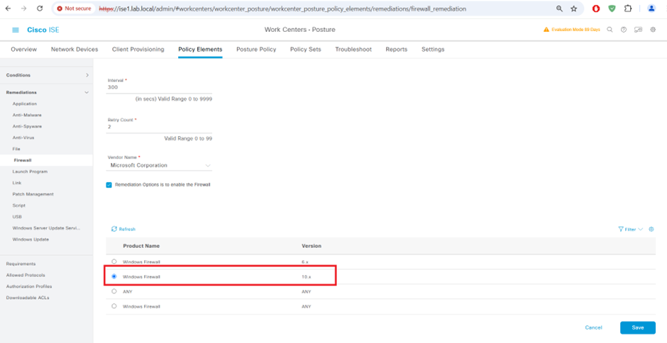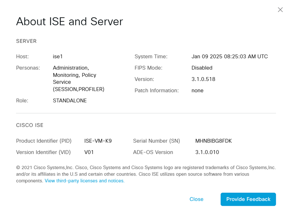 Identity Services Engine (ISE) 3.1.0 or later version.