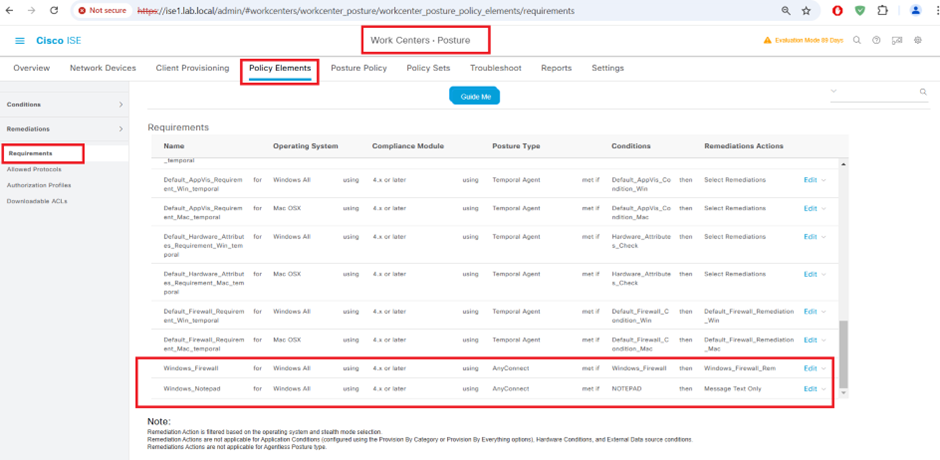 ISE Posture performs a client-side evaluation. The client receives the posture requirement policy from ISE, performs the posture data collection, compares the results against the policy, and sends the assessment results back to the ISE.