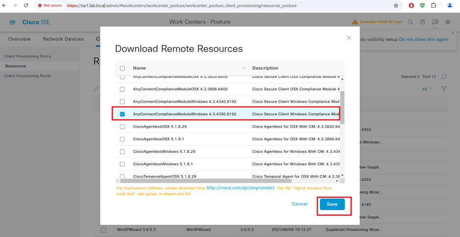 AnyConnect Compliance Module AnyConnectComplianceModuleWindows 4.3.4390.8192 Download from cisco site or upload from local disk.