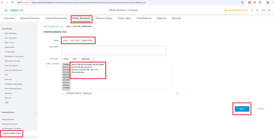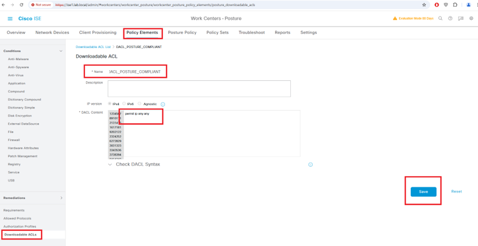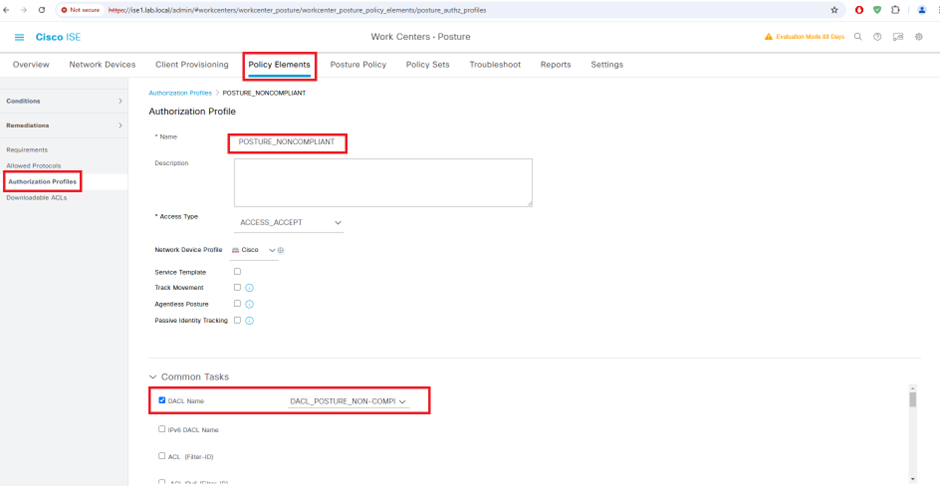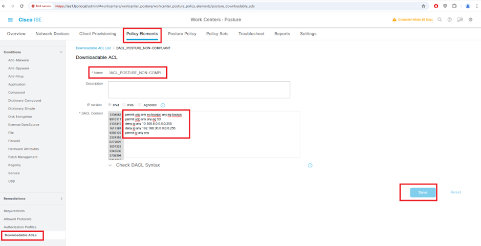 Configure Downloadable ACLs for Posture_Non-Compliant